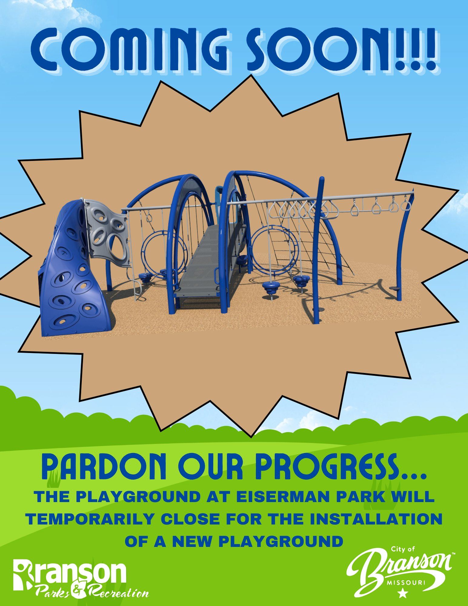 (BRANSON, MO, February 23, 2026) The Branson Parks and Recreation Department is excited to announce upcoming upgrades to Eiserman Park, located adjacent to the Branson Community Center at 201 Compton Drive. This local neighborhood park will soon feature a brand-new playground, complete with an ADA-accessible ramp for slide access, climbing features, and hand bars, all adding a fresh and exciting element for children and families in the community.