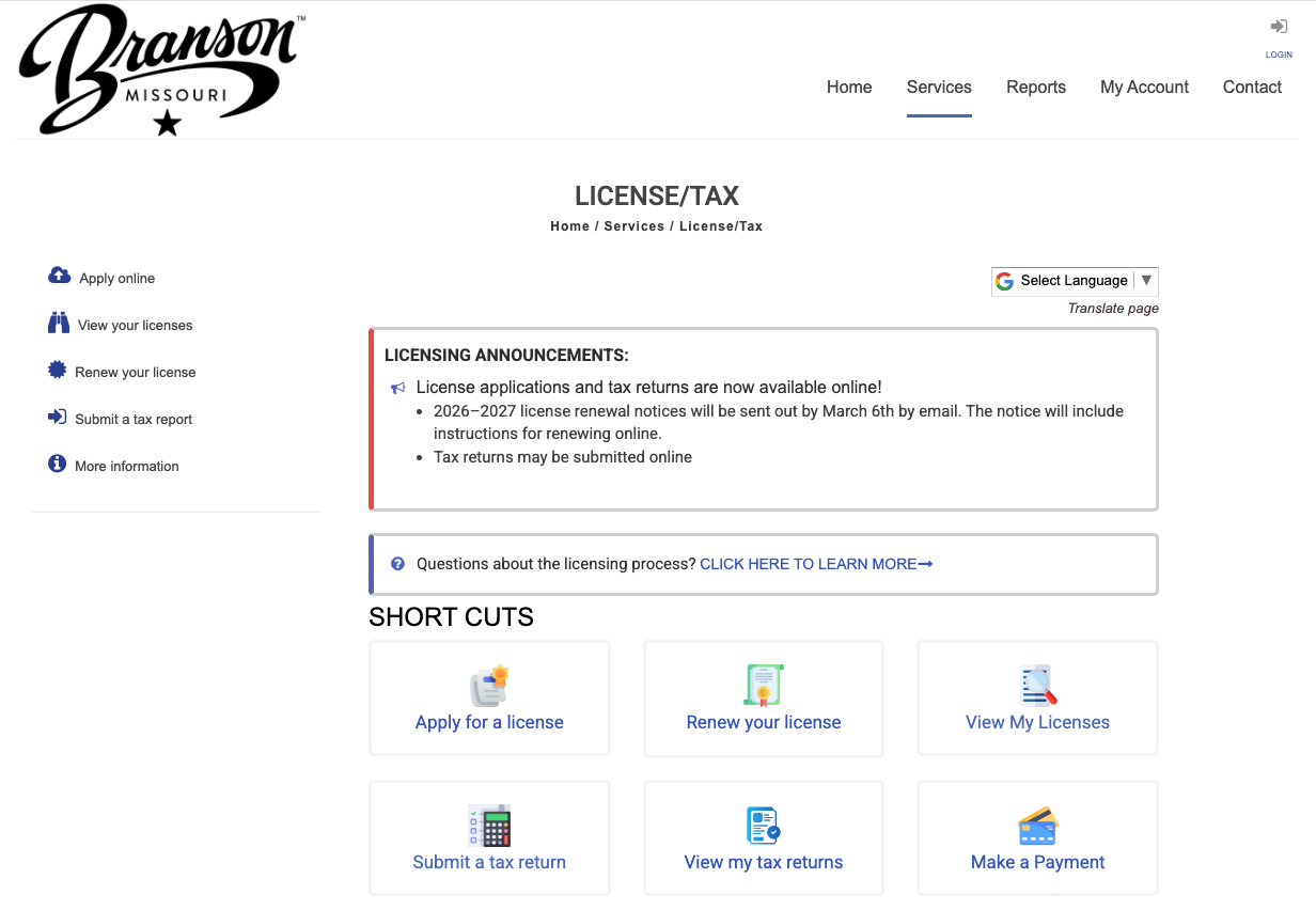 (BRANSON, MO, March 2, 2026) The City of Branson’s new Tourism Tax and Business Licensing module in Citizenserve is officially live today, delivering a fully online, streamlined process for business licensing and tourism tax submission.
